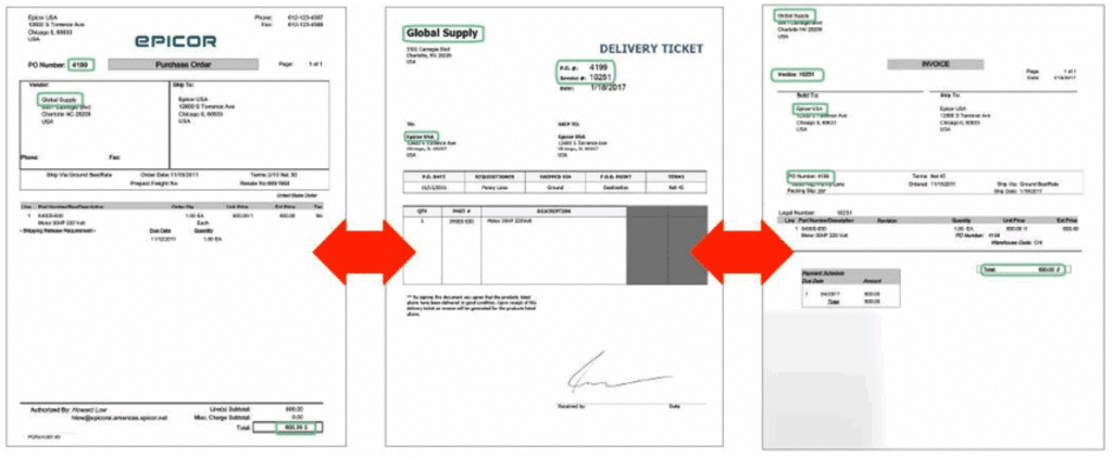 Automatically verify data with PO, receipt, and invoice records in Sage ERP.