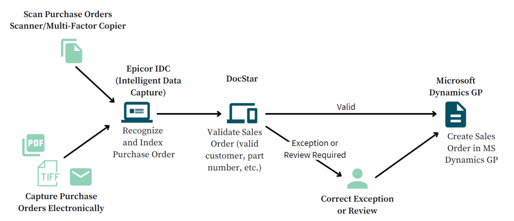 DocStar Sales Order Automation accelerates order processing from capture to fulfillment inside Microsoft Dynamics GP. By combining intelligent data capture, automated validation, and seamless integration, your team can reduce manual effort, eliminate errors, and improve visibility across every order.